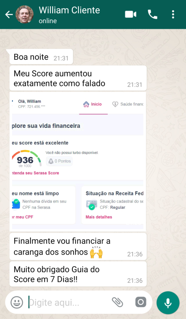 Confira agora mesmo o que nossos clientes estão falando sobre o ScoreTurbinado e conquiste hoje mesmo o seu crédito na praça com esse produto.